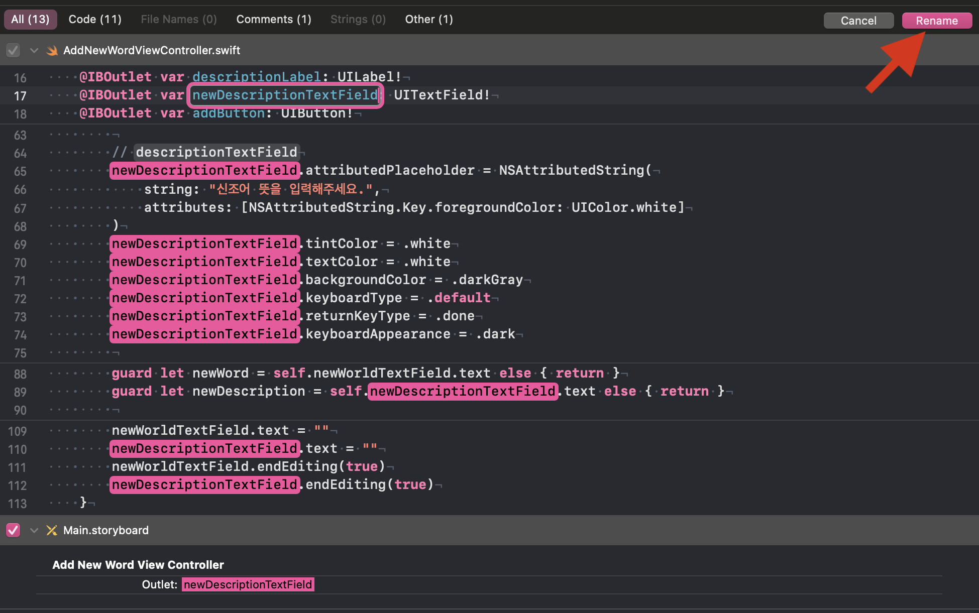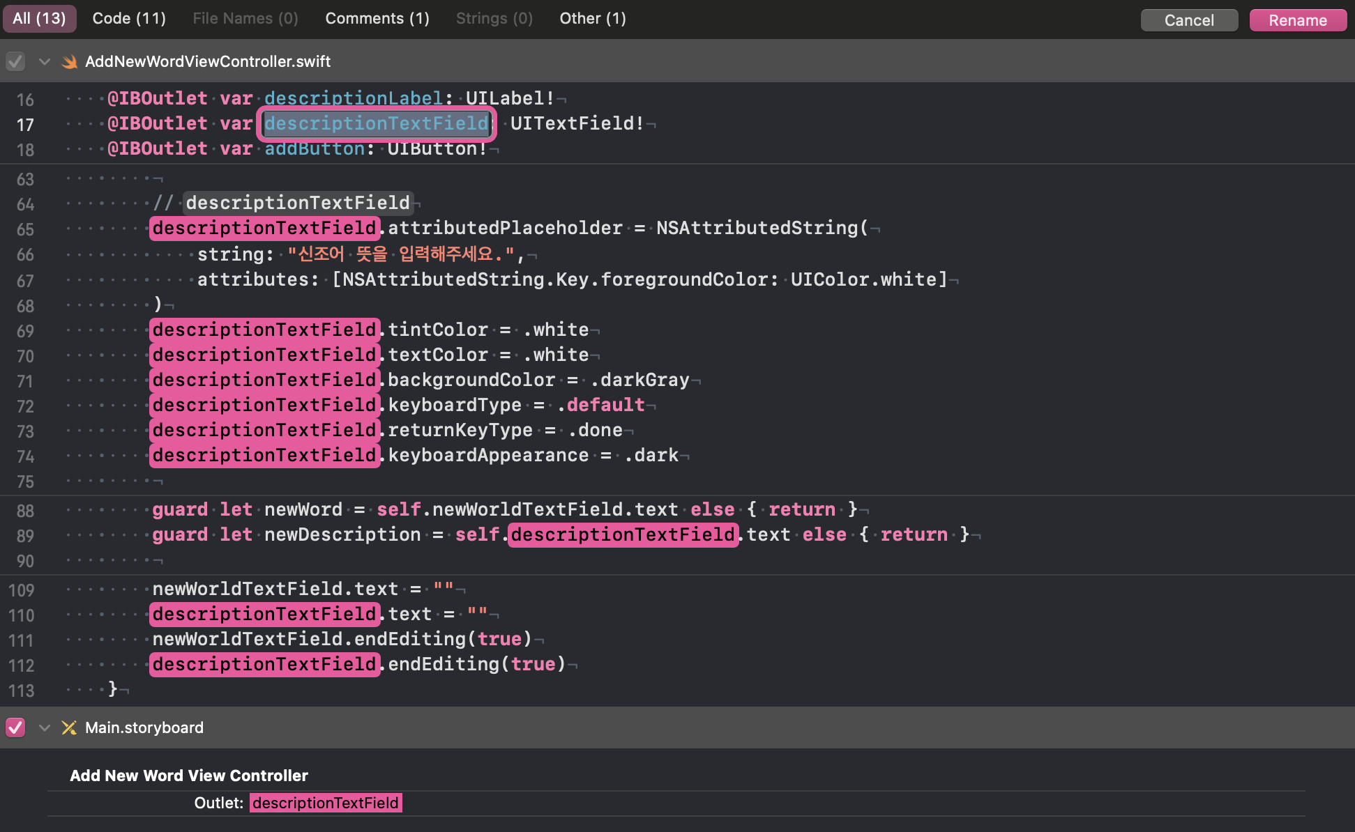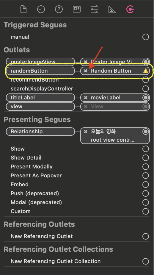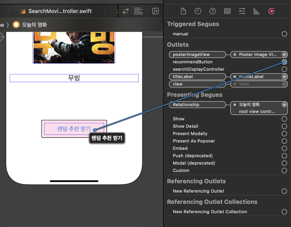 Storyboard์์ UI๋ฅผ ์ง๊ณ , Code์ ์ฐ๊ฒฐํ ๋ ์์ธ๋ ์ด๋ฆ์ ์ง์ด์ค์ผํ๋ค.