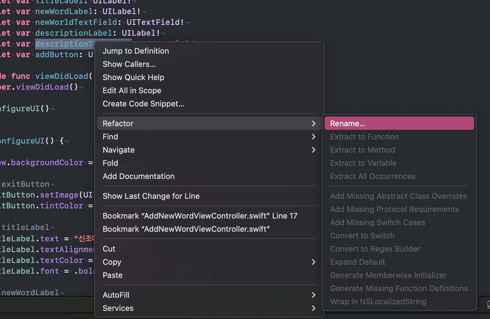 ๋ฐ๊พธ๊ณ ์ถ์ ์ด๋ฆ์์ ์ฐํด๋ฆญ - Refactor - Rename