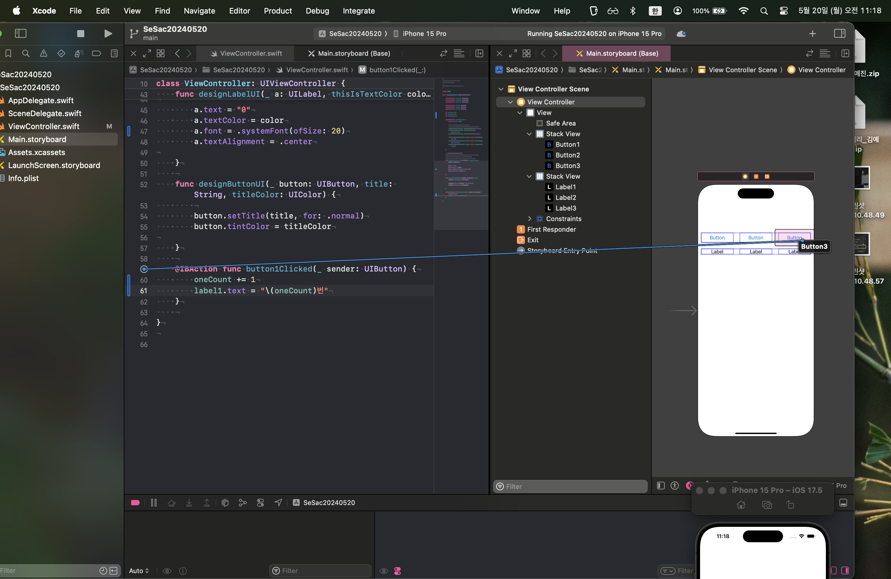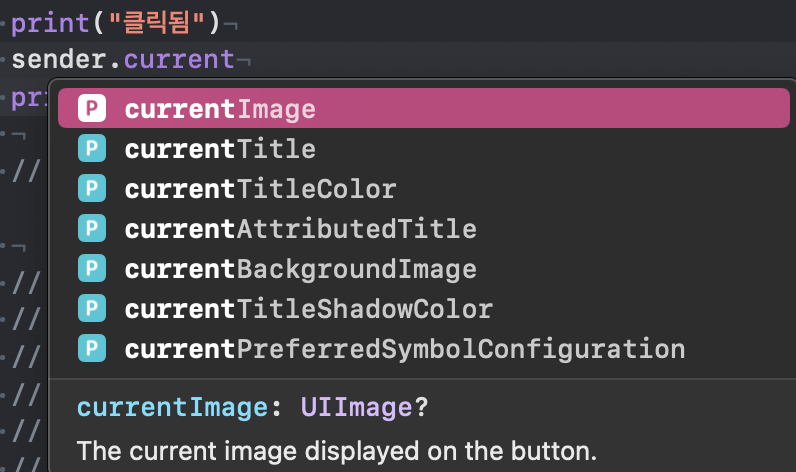 IBAction์ผ๋ก ์ฐ๊ฒฐํ ๋ถ๋ถ์ ์ ๋ณด๋ฉด, ๋งค๊ฐ๋ณ์ ๋ถ๋ถ์ (_ Sender: UIButton)๋ผ๊ณ ์์ต๋๋ค.
