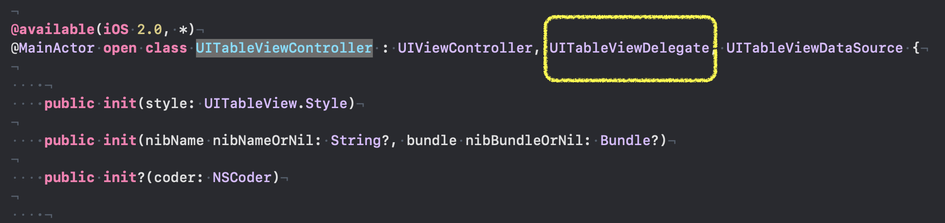 UITableViewDelegate๋ฅผ ์ฑํํ์ฌ ํ๋กํ ์ฝ์ ์ค์ํ๊ณ ์์์ ์ ์ ์์ต๋๋ค.