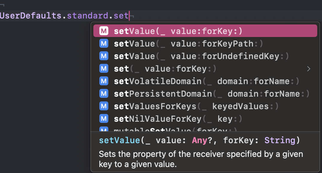 ๊ทธ ๋ค์! UserDefaults ์ ์ฅํ๋ ๋ฉ์๋ ํ ์ค๋ง ์์ฑํ๋ฉด ๋ฉ๋๋ค!
