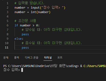 ์์ ํ๋ฉด์ ๋ณด๋ฉด if ์กฐ๊ฑด๋ฌธ ์ฌ์ด์ pass๋ฅผ ํ์ฉํ๋, ์ ์์ ์ผ๋ก ์ฝ๋๊ฐ ์คํ๋๋ ๊ฒ์ ํ์ธํ ์ ์๋ค.