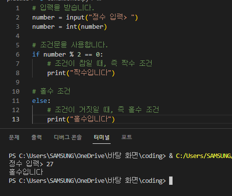 ์๋ ํ๋ฉด์ '[03-1] ์กฐ๊ฑด๋ฌธ' ๋ง์ง๋ง ์ซ์ ์ฐ์ฐ์ ํตํ ์์ ์ else ๊ตฌ๋ฌธ์ ํ์ฉํ ๊ฒ์ด๋ค.