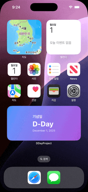 ์ง๋ ๊ธ์์๋ ๊ธฐ๋ณธ์ ์ธ D-Day ์์ ฏ UI ๊ตฌ์ฑ๊ณผ SwiftUI ๊ธฐ๋ฐ์ WidgetKit ๋์ ๊ตฌ์กฐ๋ฅผ ์ ๋ฆฌํด๋ดค๋ค.