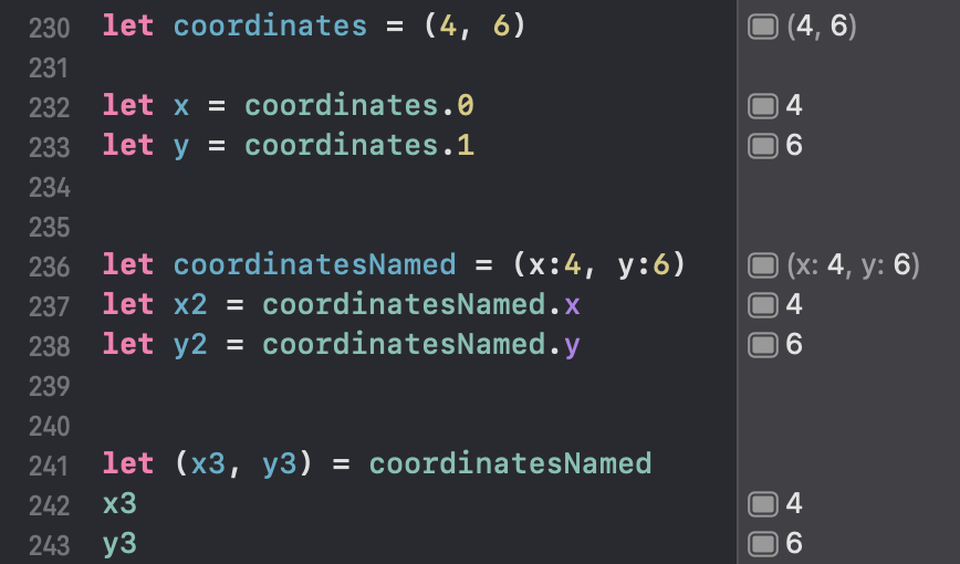 Swiftμμ Tupleμ λ€μν κ°(λ°μ΄ν°)μ λ¬Άμμ λ§νλ€.