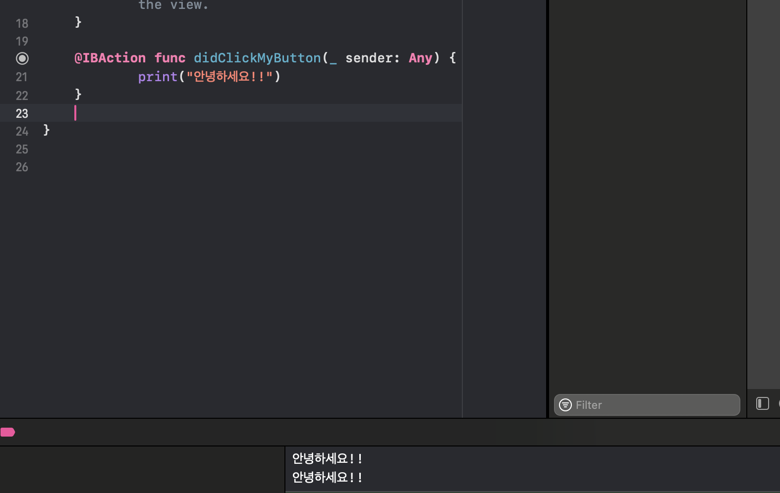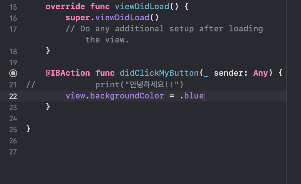 IBAction์ ๊ฒฝ์ฐ ์ฝ๋ ์๋ ์ชฝ์ ๋ณดํต ๋ฃ๋๋ค.