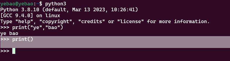 print() ํจ์ ๊ดํธ ์์ ์๋ฌด๊ฒ๋ ์ ๋ ฅํ์ง ์์ผ๋ฉด, ์๋ฌด๊ฒ๋ ์ถ๋ ฅํ์ง ์๊ณ ์ค๋ฐ๊ฟ์ ํ๋ค.