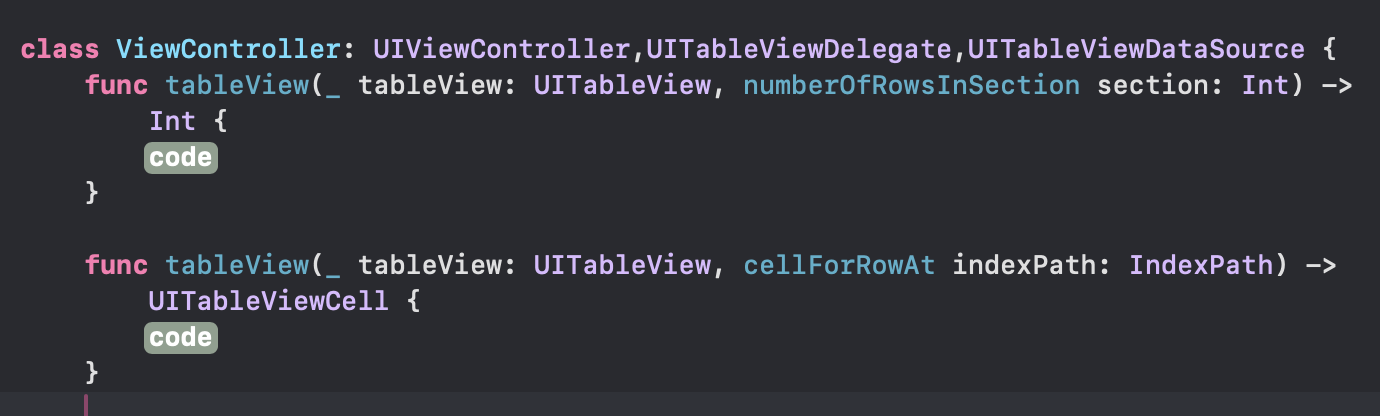 โฃ class์ UITableViewDelegate,UITableViewDataSource ์ถ๊ฐ