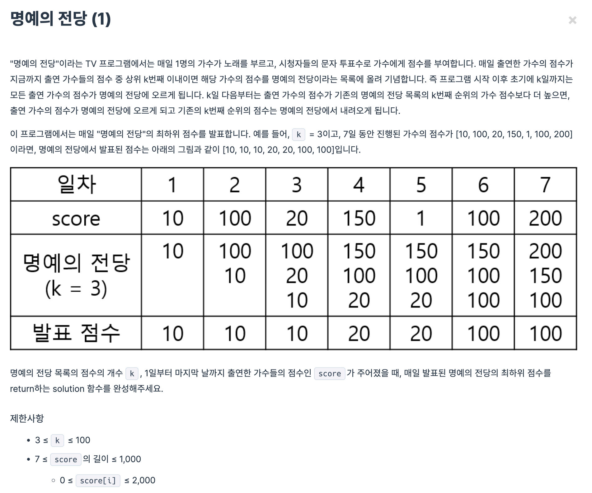 if ๋ฌธ์ผ๋ก hallOfFame์ ์๊ฐ k๋ณด๋ค ์ปค์ง๋ฉด,
