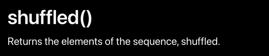 shuffled()๋ ์์๋ฅผ ์์ ์์๋ค์ ๋ฐํํ๋ ํจ์์ด๋ค.