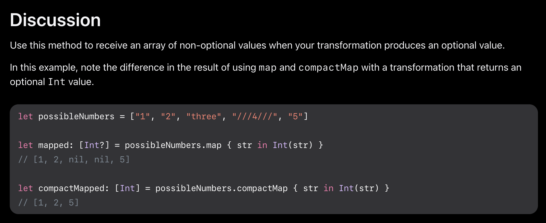 ๋ ์ ๊ฑฐ๋ฅผ ์ํด compactMap(_:) ์ฌ์ฉ)