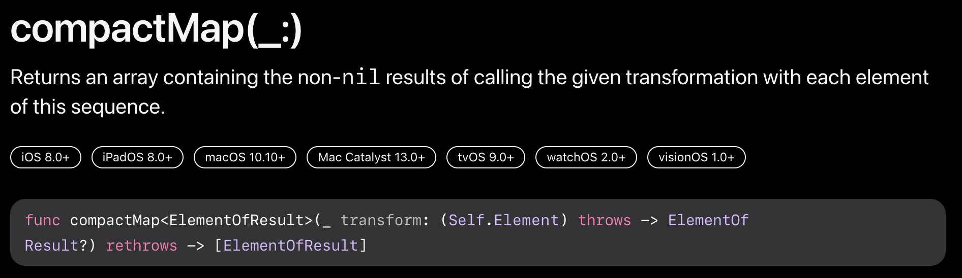 compactMap(_:) | Apple Developer Documentation