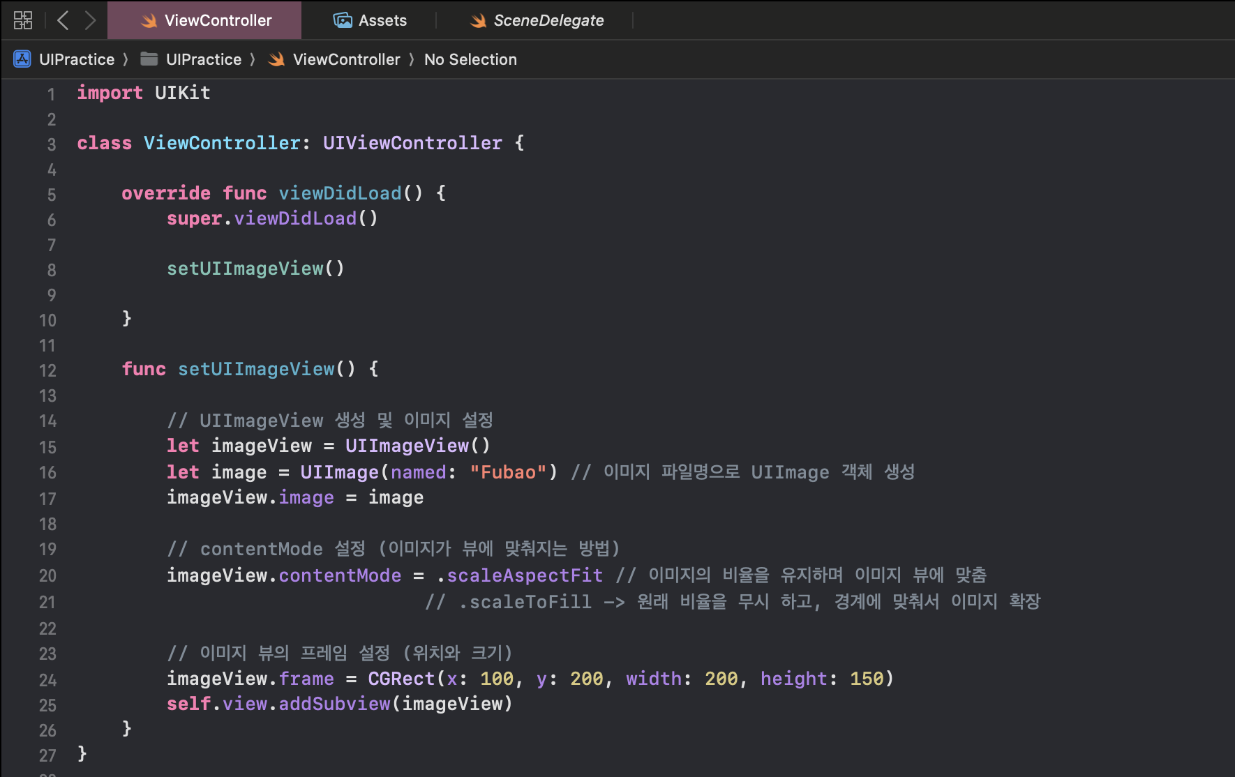 UIImageView๋ Viewcontroller์ ์ฝ๋๋ฅผ ์์ฑํ๊ธฐ ์ ์