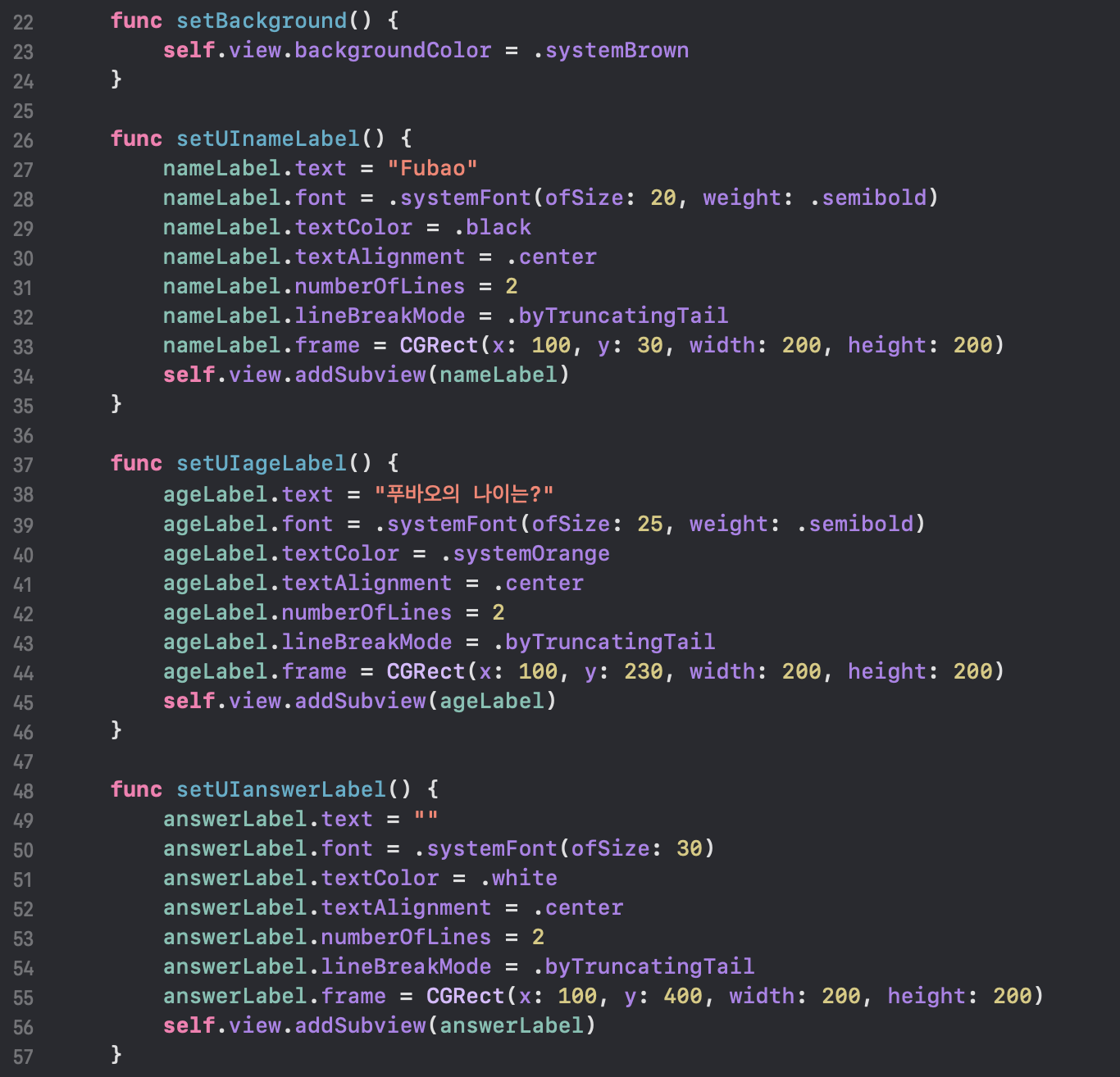 ์ฒ์์ ๊ฐ๊ฐ์ UIView ์ปดํฌ๋ํธ๋ค์ ์ฝ๋๋ก ๋ง๋ ํ,