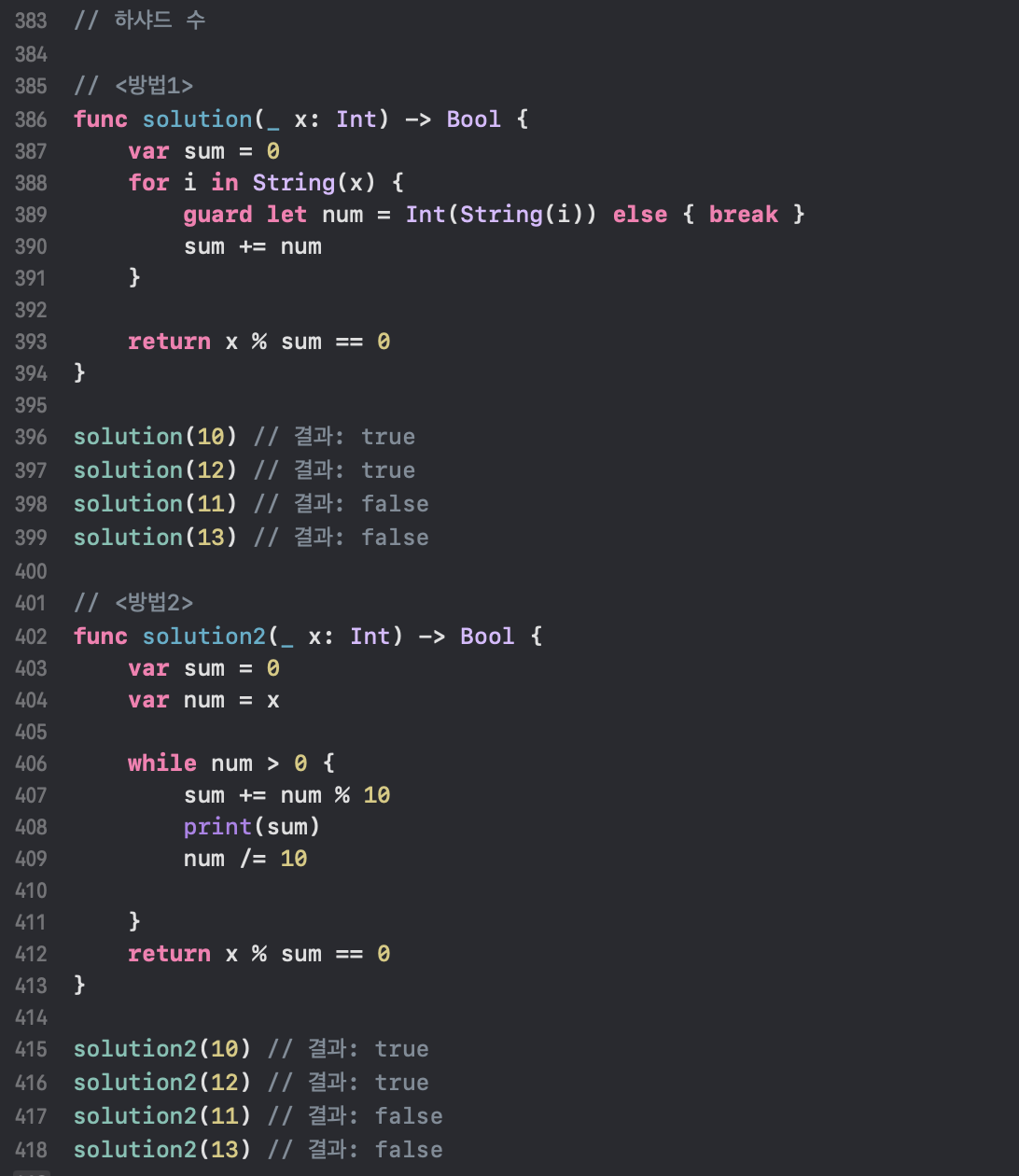 [Swift] 프로그래머스_문자열을 정수로 바꾸기 / 정수 제곱근 판별 (0) | 2024.03.20 |