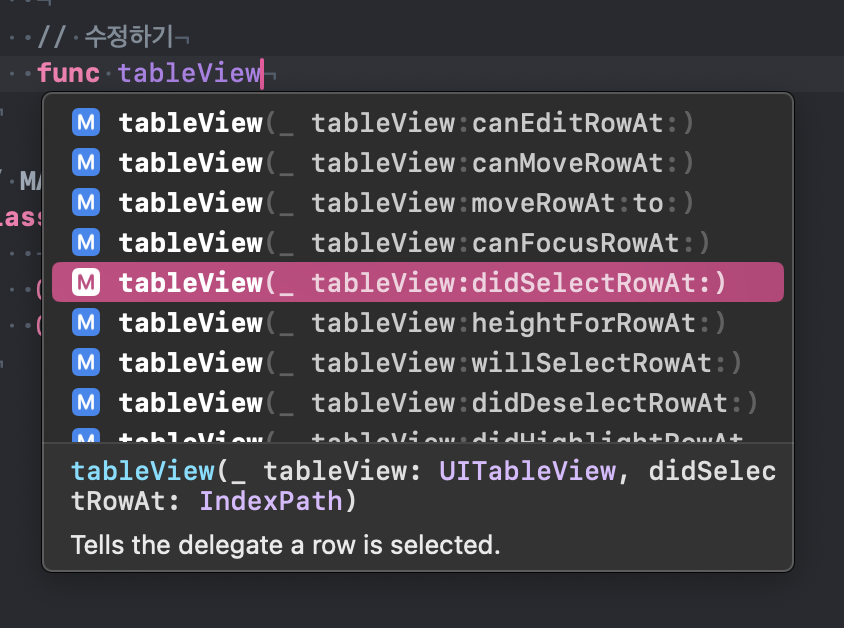 'Tells the delegate a row is selected.'๋ผ๊ณ ์ ํ์๋ ๊ฑฐ ์ ํ!