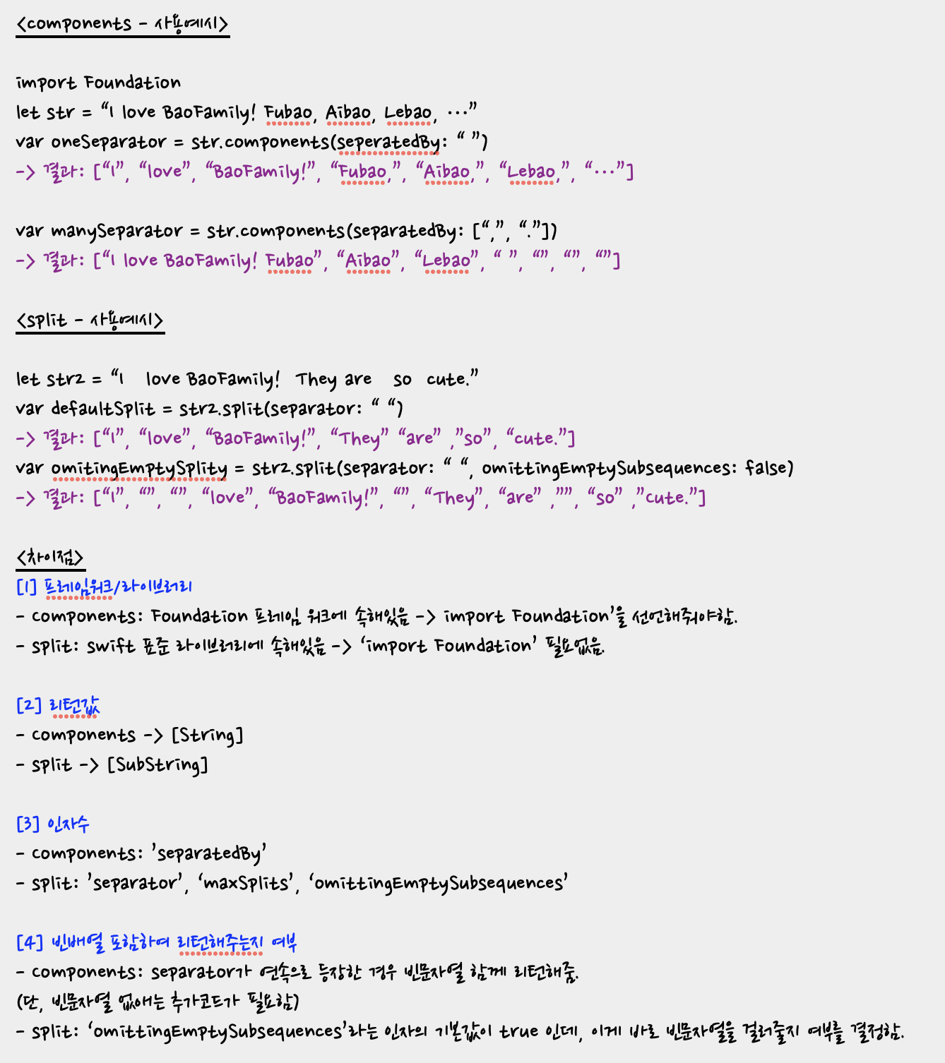 split๋ ‘omittingEmptySubsequences’๋ผ๋ ์ธ์์ ๊ธฐ๋ณธ๊ฐ์ด true ์ธ๋ฐ, ์ด