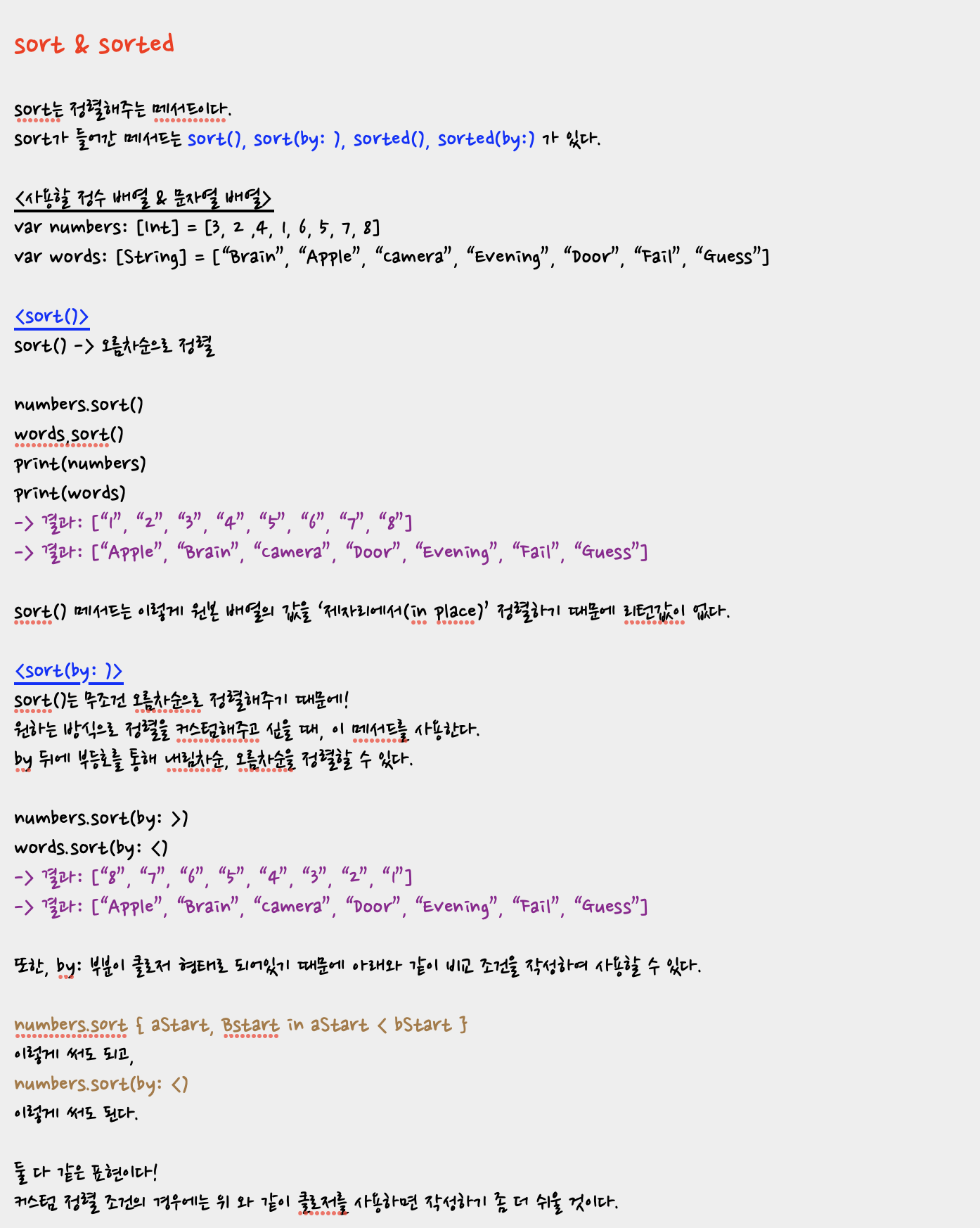 ๋ง์ฐฌ๊ฐ์ง๋ก sort(by: )์ ์ฐจ์ด์ ์ ๋ฆฌํด๊ฐ์ ์ ๋ฌด์ด๋ค!