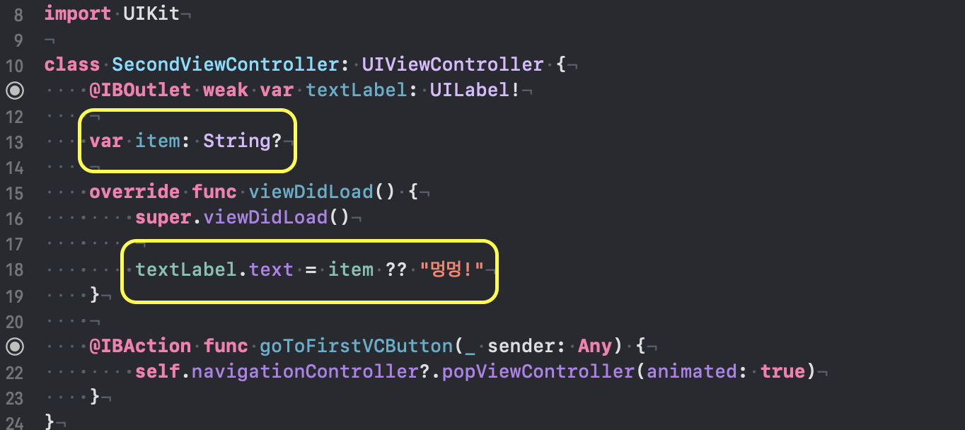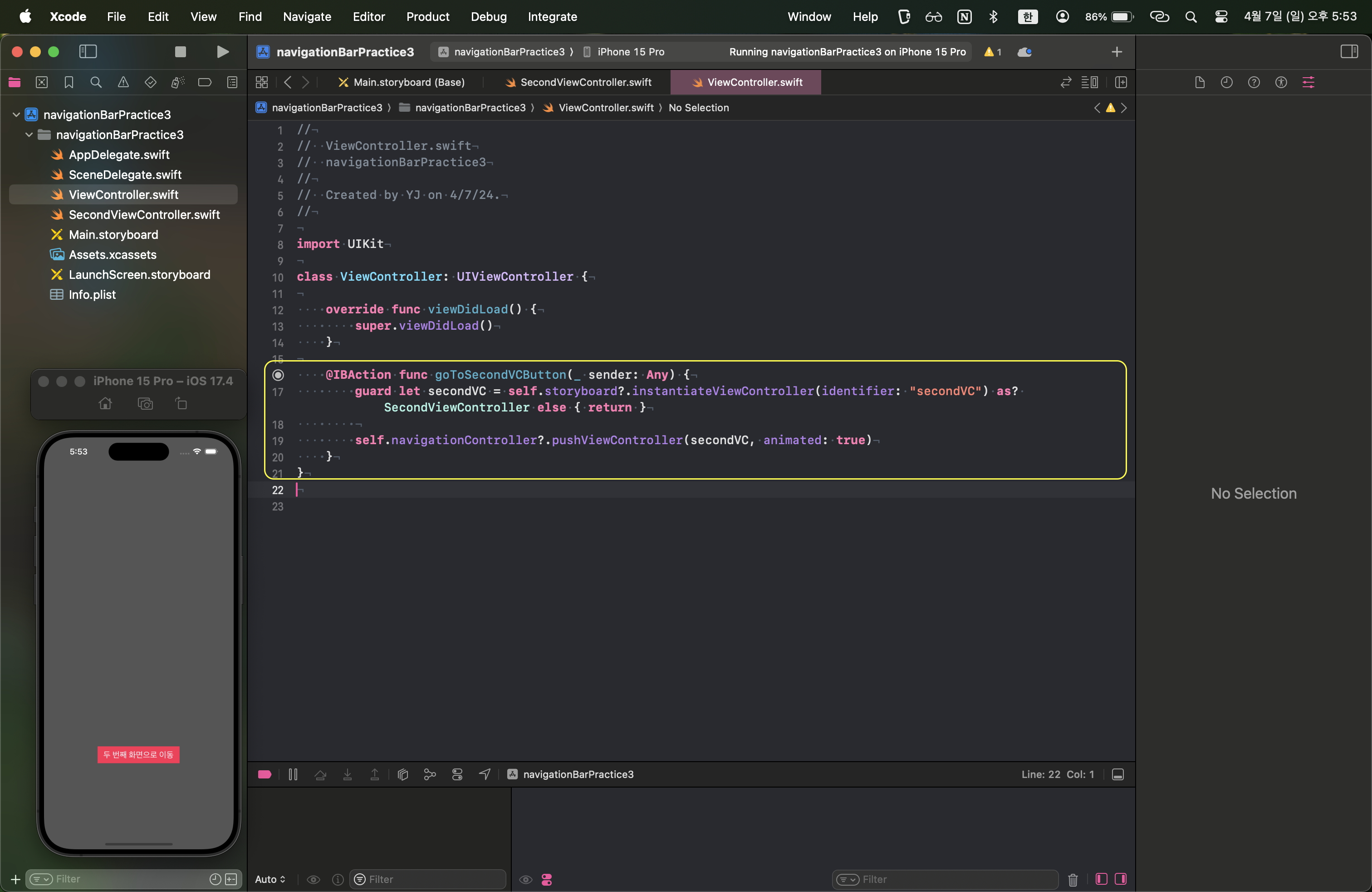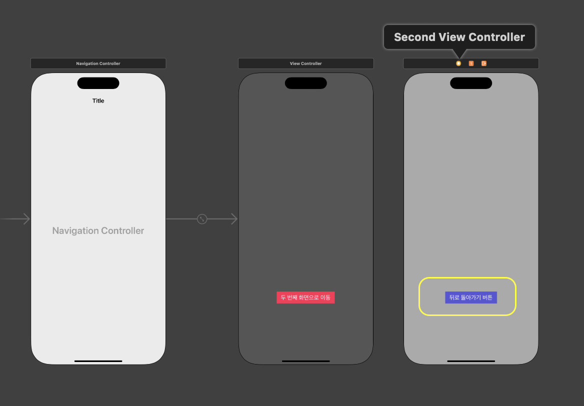 이렇게 하면, 버튼 클릭시 SecondVC로 넘어감!