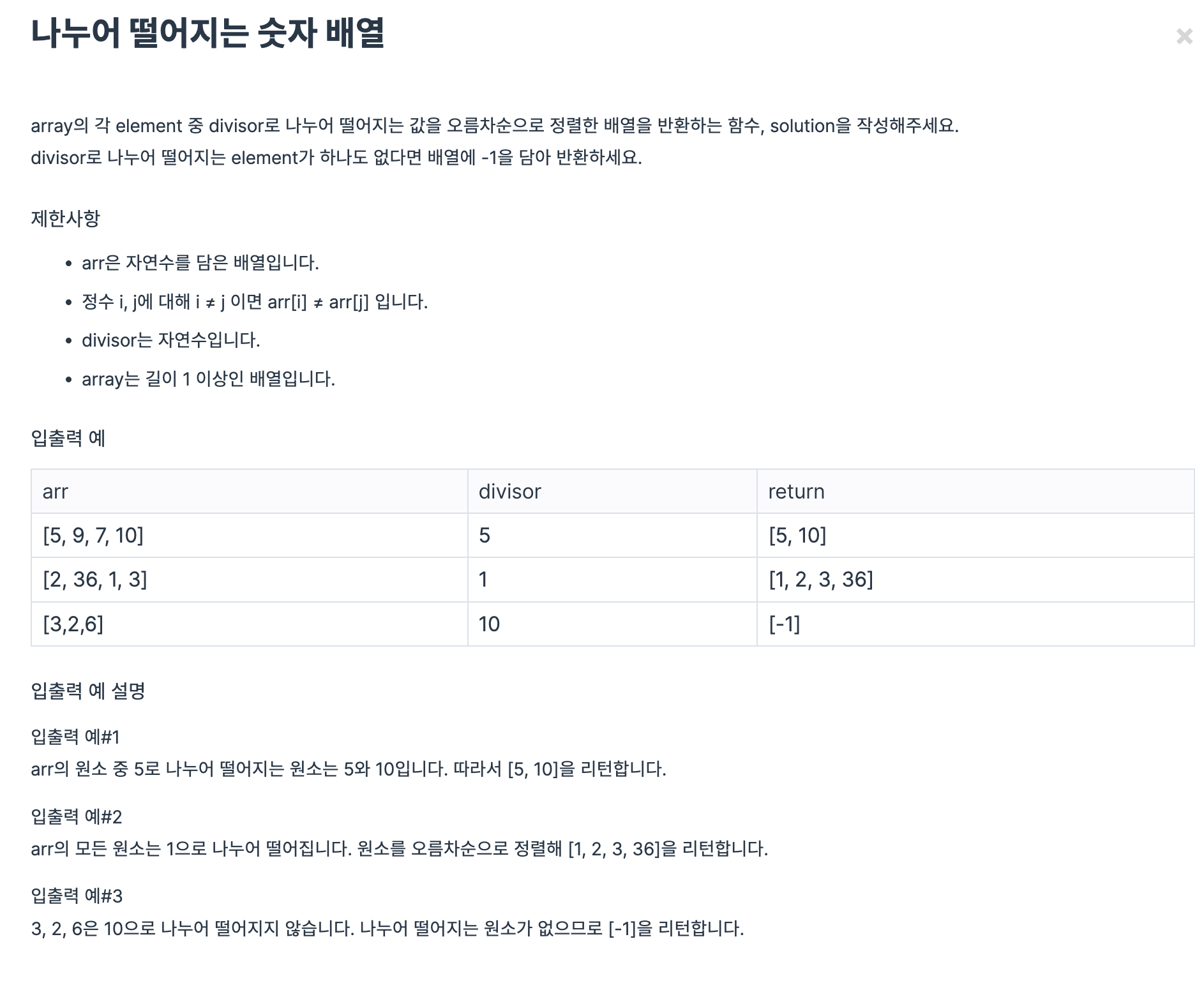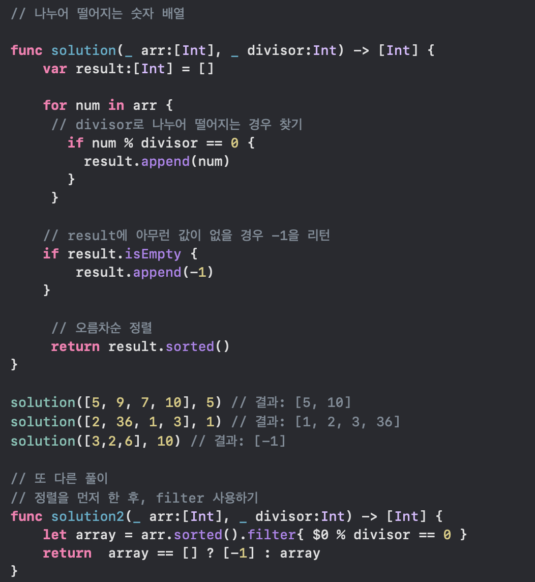 | [Swift] ํ๋ก๊ทธ๋๋จธ์ค_๋๋์ด ๋จ์ด์ง๋ ์ซ์ ๋ฐฐ์ด (0) | 2024.04.17 |