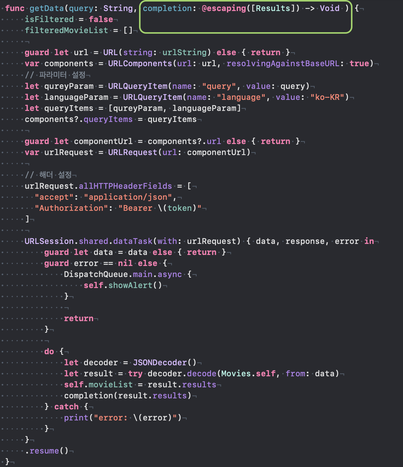 ์! ์๊น ์๋ฌ ๋ฐ์ํ๋ ์ฝ๋์์ @escaping ํค์๋๋ฅผ ๋ฃ์ด์คฌ๋๋